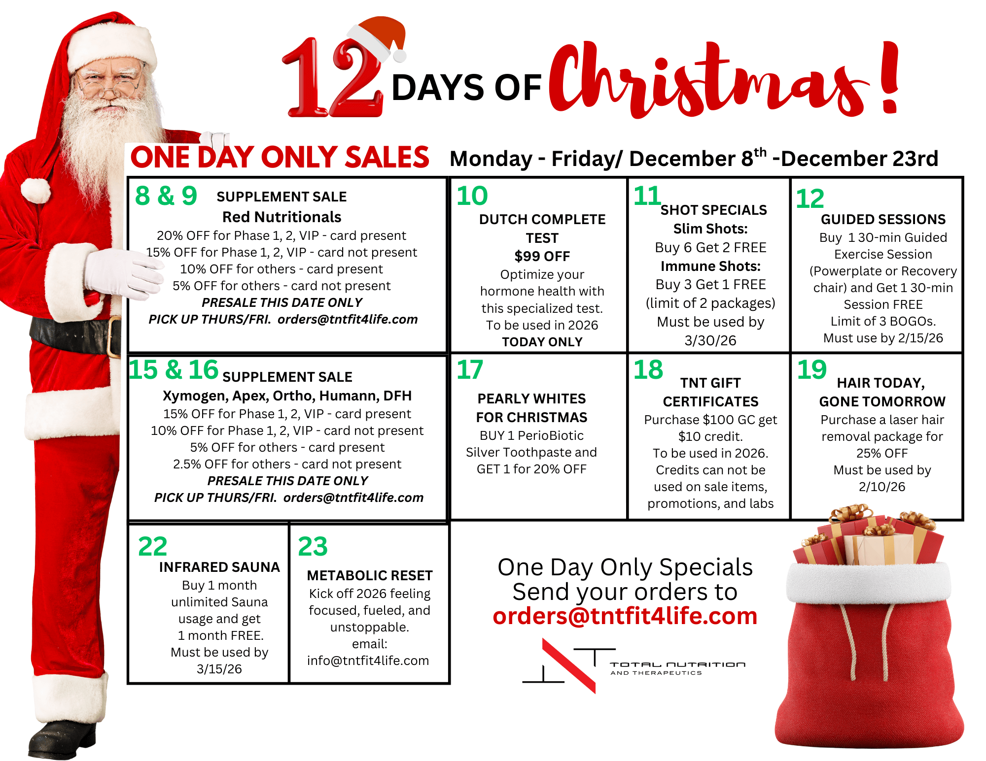 Most clinics treat symptoms. TNT digs deeper. We work to uncover the underlying reasons your body isn’t functioning the way it should, then give you the tools to change that. Through in-depth diagnostics, personalized nutrition, and science-backed therapies, we help you restore balance, energy, and long-term health from the inside out.