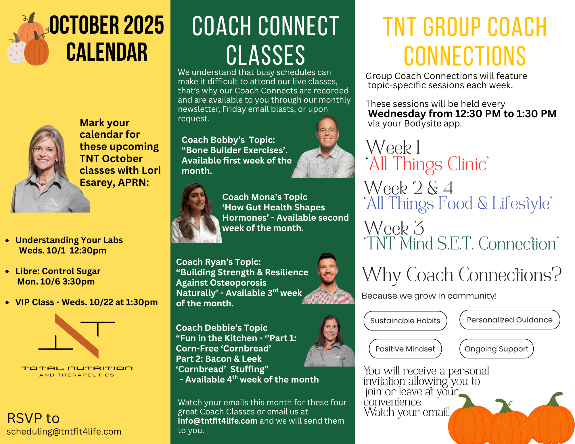 Don’t be fooled by the label anymore! Join TNT’s Health Coach as she delves into what is really in the food or products we purchase. Each class will focus on a certain topic. such as artificial sweeteners, industrial oils, and self-care products to name a few. Check your calendar for what is being offered each month.